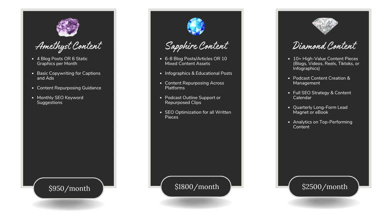 ✓ ONE-OFF SERVICES – Need a single project handled? From a website refresh to a content batch or a strategy session, we’ve got you covered.