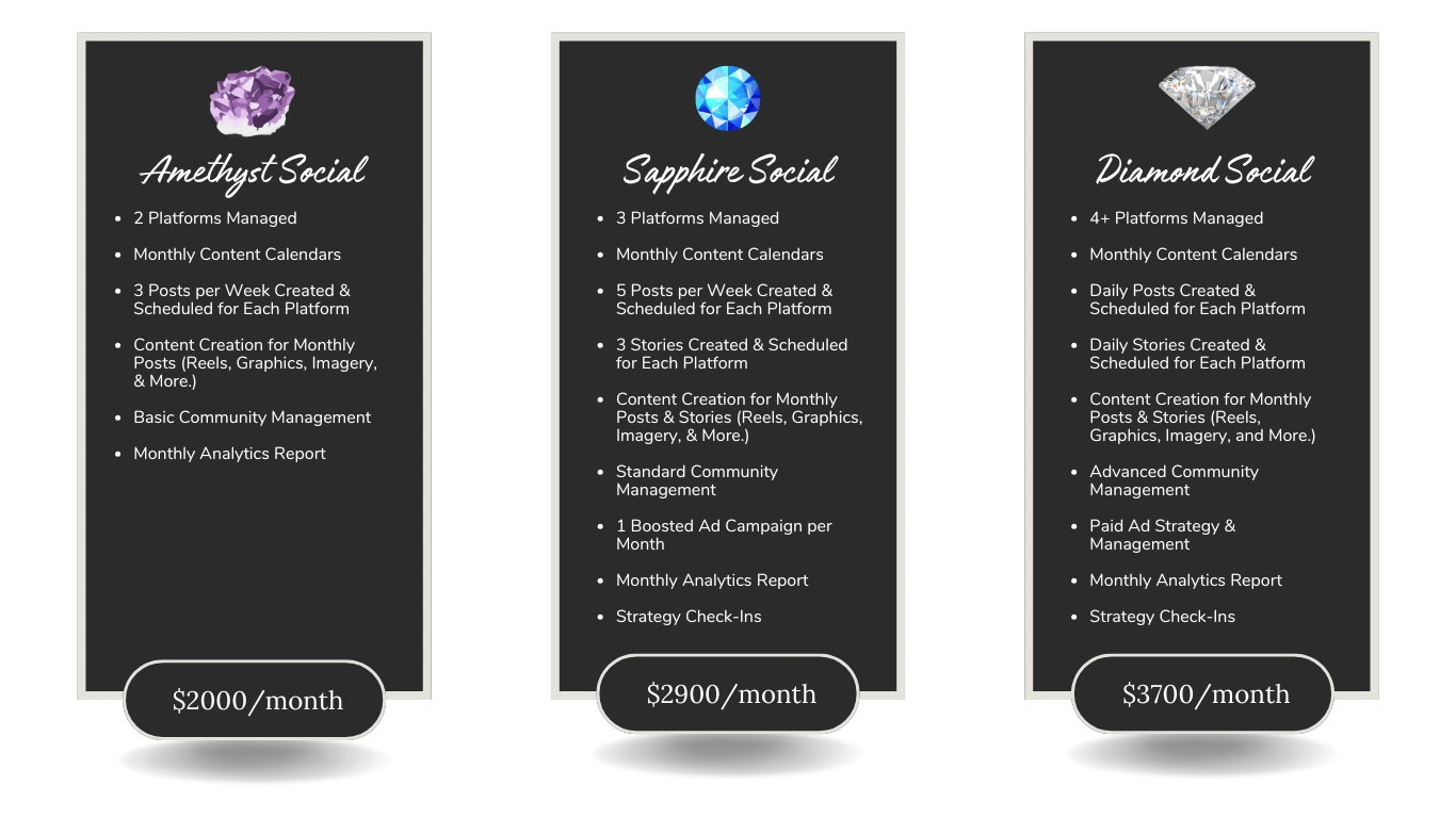 ✓ CUSTOM PACKAGES– Let’s mix and match services or build a completely tailored plan that aligns perfectly with your vision.